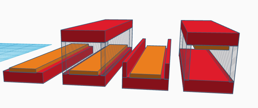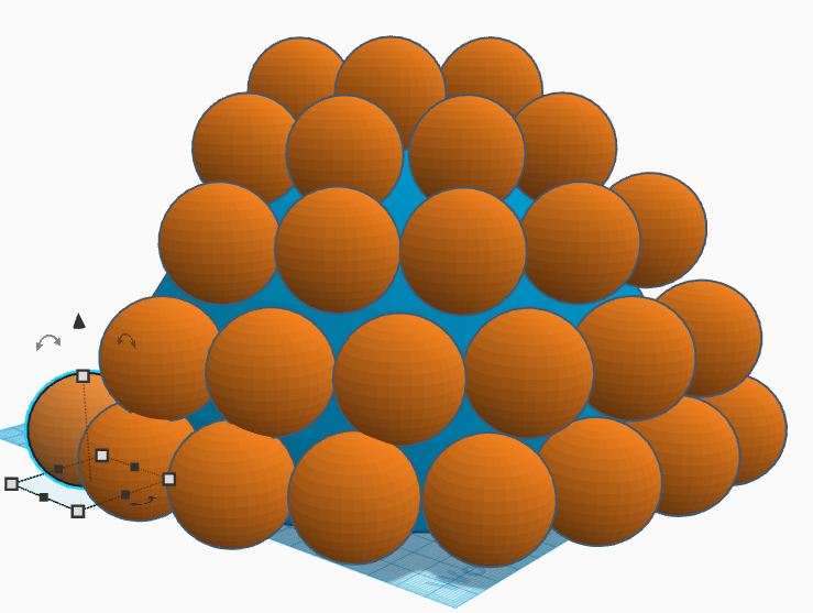 In deze afbeelding rechts staan de pingpong balletjes uitgebeeld als orange balletjes. Deze zouden door de ledjes van kleur kunnen veranderen. Met dit design was ik best blij alleen ik dacht hierbij ook dat ik redelijk snel klaar zou zijn met het design en wou meer iets wat ik aan kon passen naar hoe ik het wou. Om deze reden ben ik verschillende manier om het modulair te maken gaan maken.